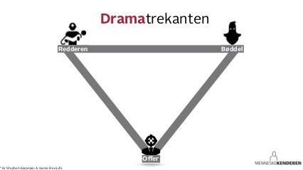 Dramaet er i gang, og den anden psykologiske dynamik i offermentaliteten, dramatrekanten, er aktiveret.